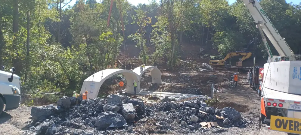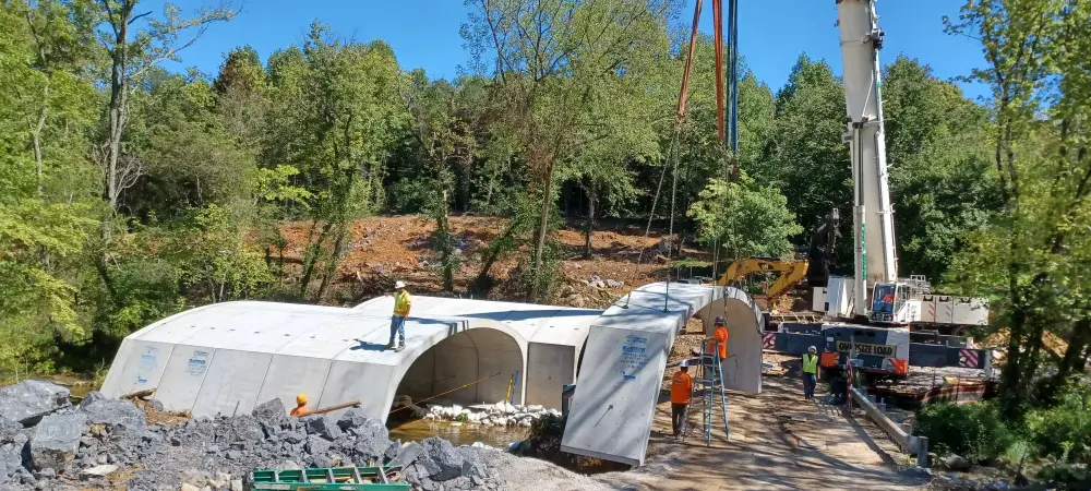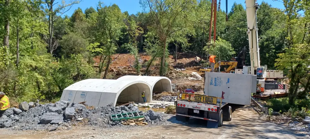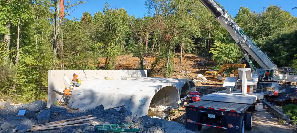When a precast bridge showed up months ahead of schedule—and the only access was an aging farm crossing—we got to work. Tight site lines, overhead utilities, unknown load limits, bedrock footers, and a creek drop? We choreographed it all: two-phase construction, a 300-ton crane set across the creek, off-site staging for dozens of oversized loads, and rapid pivots when a concrete supplier fell through.